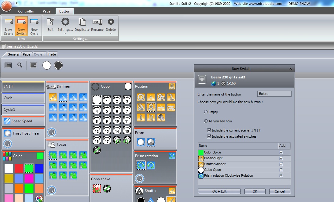 Hướng dẫn tạo cảnh Switch và lồng vào cảnh đèn trên phần mềm Sunlite Suite 2