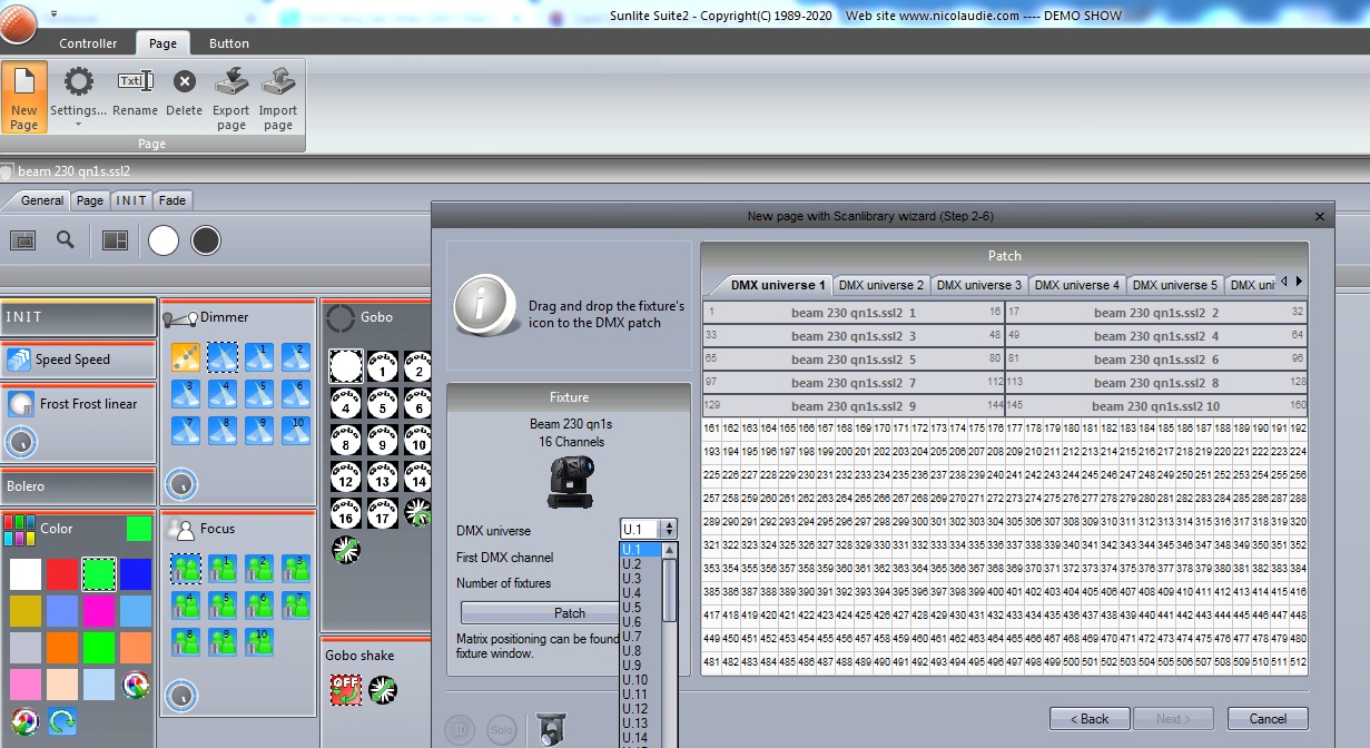 Lựa chọn Universal tương ứng cho lượng đèn sân khấu cần add vào và sử dụng trên Card sunlite nào.