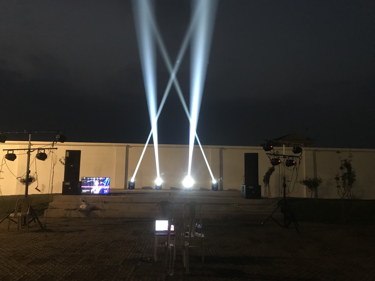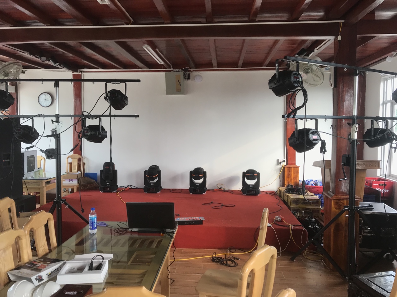 Ánh sáng sân khấu QNS lắp đặt hệ thống ánh sáng trong nhà và ngoài trời cho Trung Tâm Tổ Chức Sự Kiện của anh Bình tại Sơn La với mức đầu tư tầm trung. Trong tương lai sẽ mở rộng thêm gấp nhiều lần.