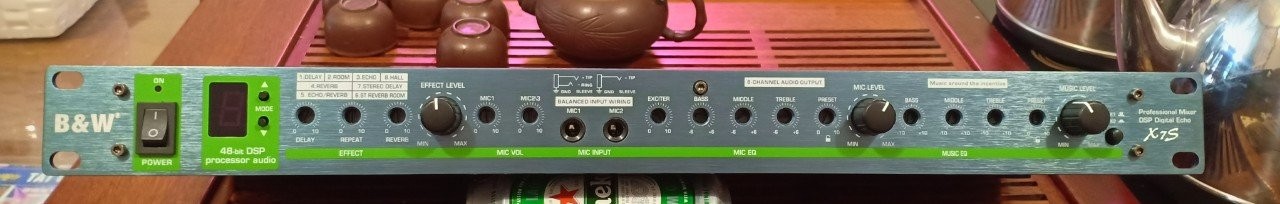 B&W là hãng sản xuất và cung cấp thiết bị âm thanh đã quá quen thuộc với các tín đồ âm thanh trên thế giới. Là thương hiệu tên tuổi lâu năm trên thị trường, B&W luôn không ngừng cải tiến và mang đến những dòng sản phẩm chất lượng nhất đến tay người tiêu dùng. Và một trong số đó chính là mixer Karaoke X7S - một trong những thiết bị chộ âm thanh với 8 cấu hình hiệu ứng được cài sẵn mà người sử dùng vẫn tự đo tùy biến trê mỗi cấu hình để thỏa mãn nhưu cầu cảm nhận thanh sắc cá nhân.